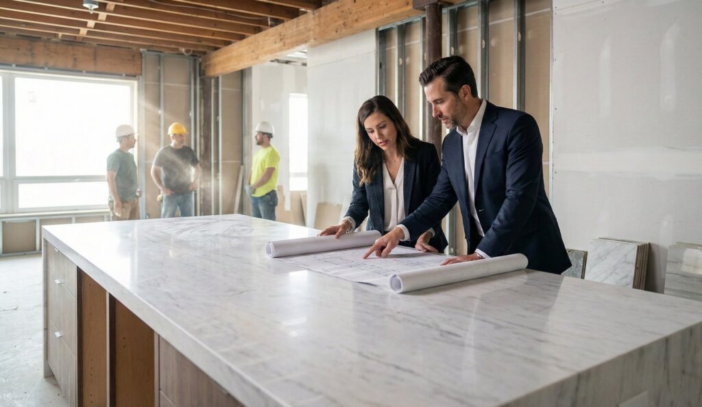 | Feature Wall Material | Book-matched Italian Calacatta Gold slabs with non-compliant resin backing. | Sintered stone or large-format porcelain with full DCD-approved assembly certification from day one. |